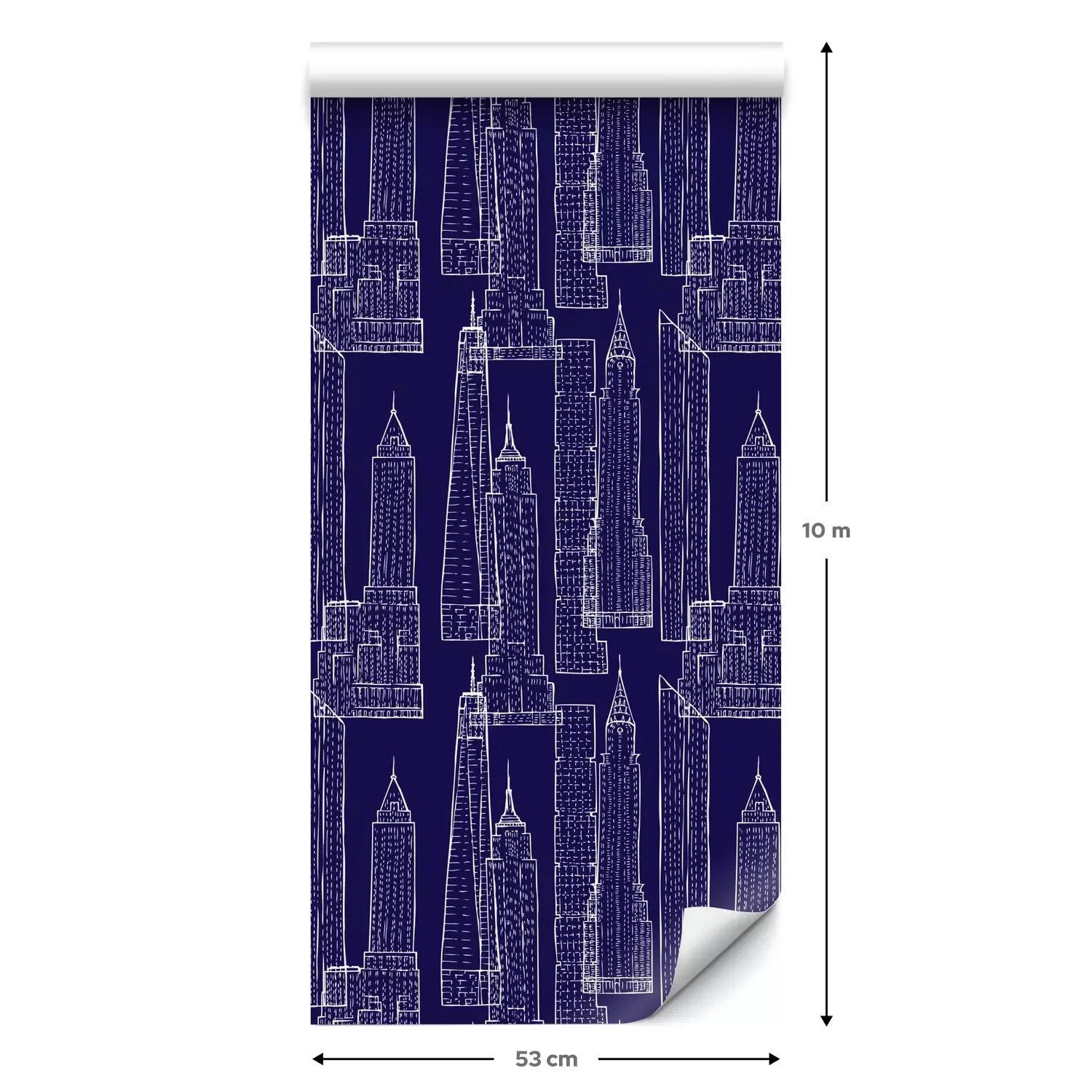 Eine Standard-Tapetenrolle hat die Maße 0,53 m x 10 m und deckt eine Wandfläche von etwa 5 m² ab.