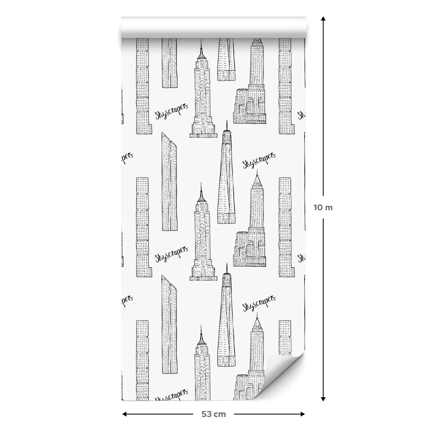 Eine Standard-Tapetenrolle hat die Maße 0,53 m x 10 m und deckt eine Wandfläche von etwa 5 m² ab.