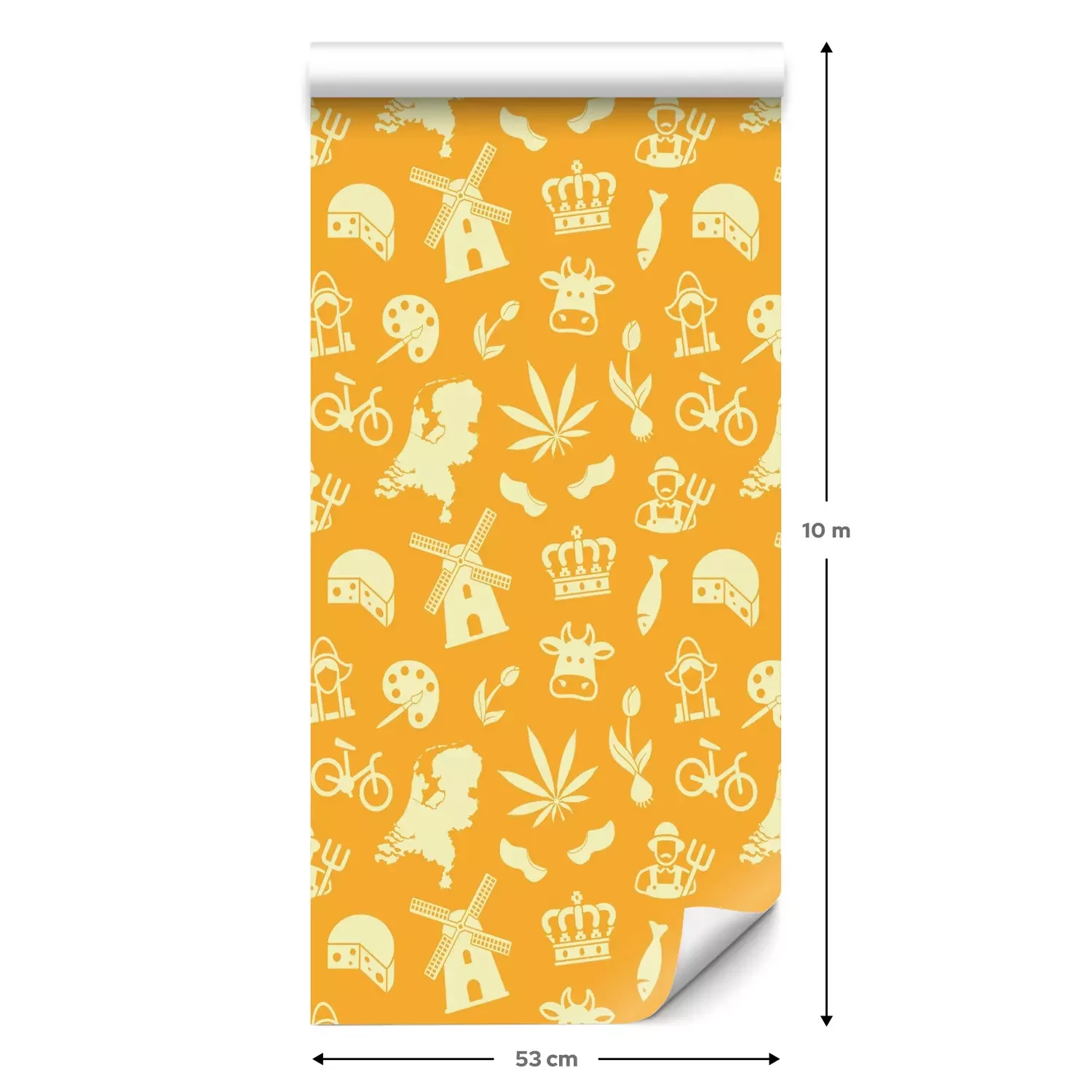 Eine Standard-Tapetenrolle hat die Maße 0,53 m x 10 m und deckt eine Wandfläche von etwa 5 m² ab.