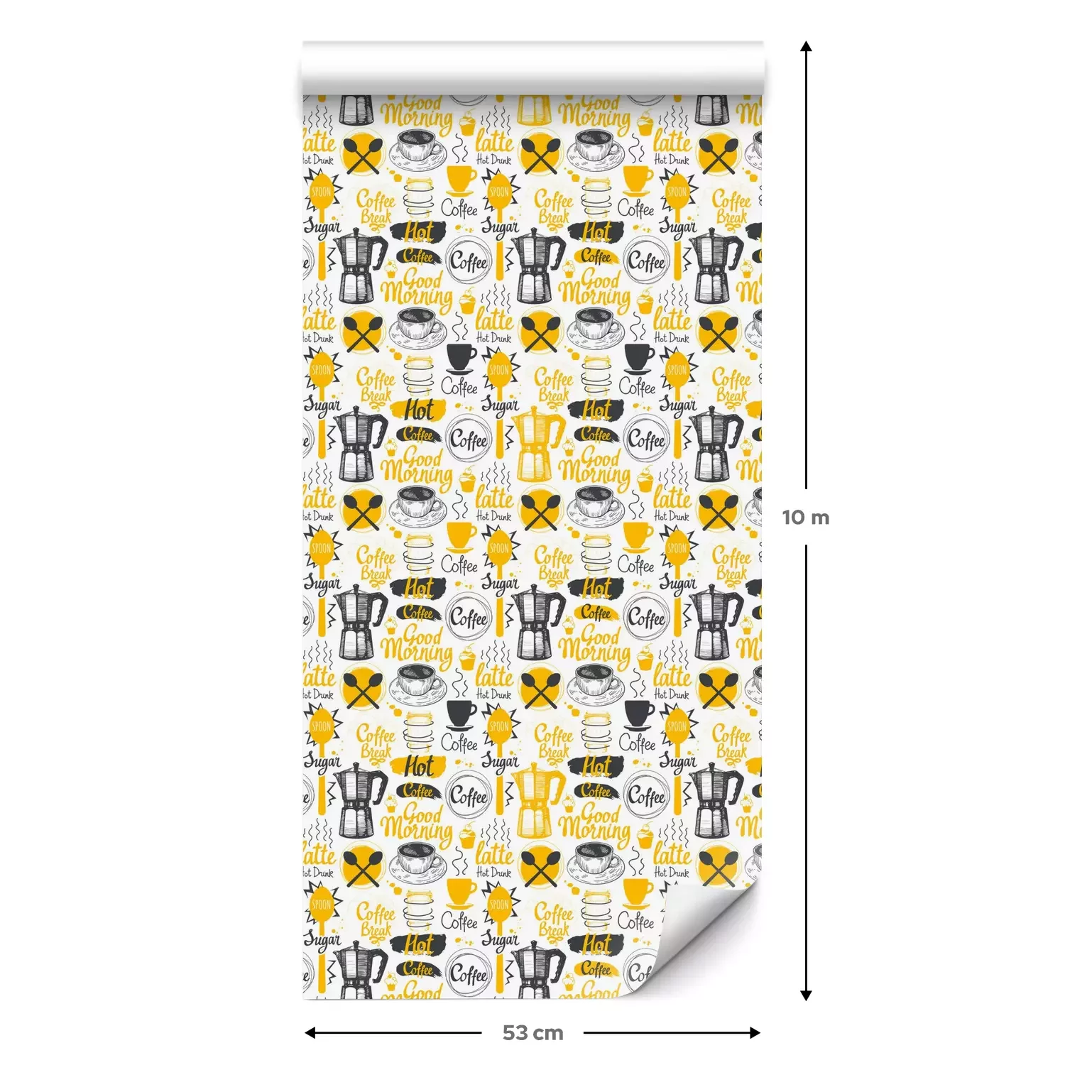 Eine Standard-Tapetenrolle hat die Maße 0,53 m x 10 m und deckt eine Wandfläche von etwa 5 m² ab.