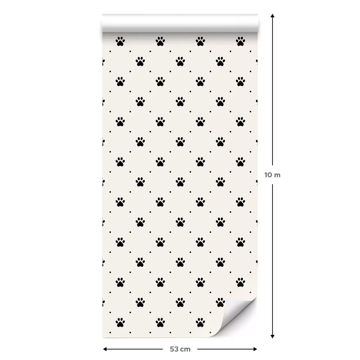 Eine Standard-Tapetenrolle hat die Maße 0,53 m x 10 m und deckt eine Wandfläche von etwa 5 m² ab.