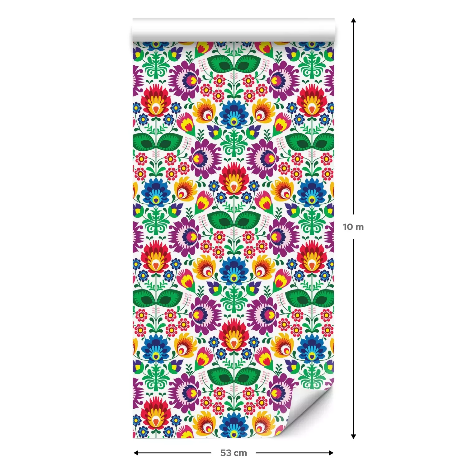 Eine Standard-Tapetenrolle hat die Maße 0,53 m x 10 m und deckt eine Wandfläche von etwa 5 m² ab.