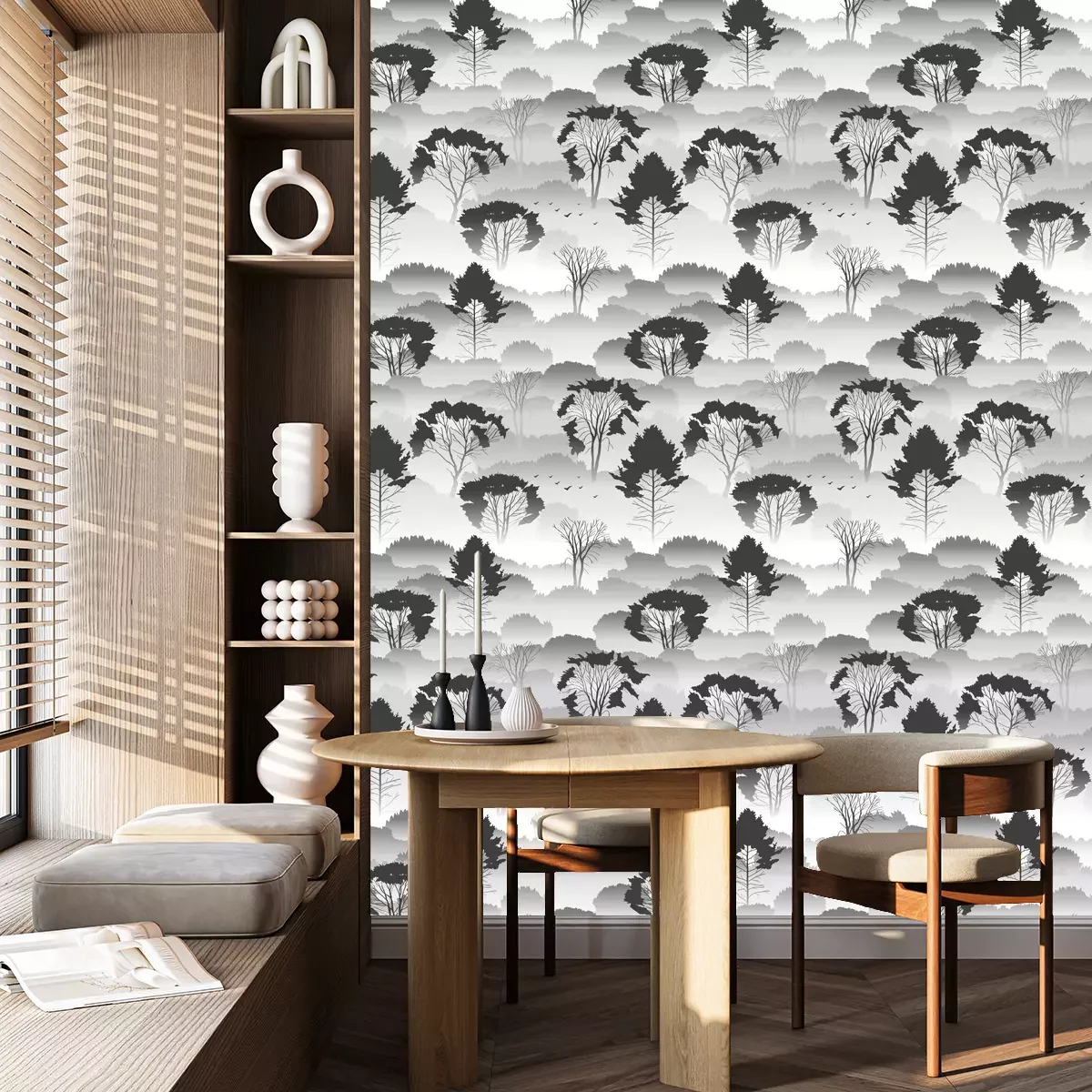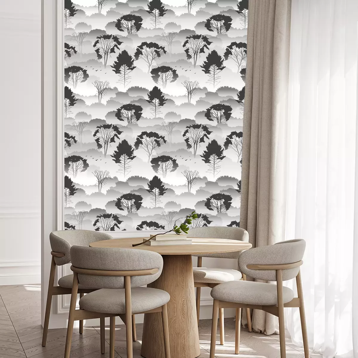 Die Tapete zeichnet sich durch ein sich wiederholendes Muster aus, das ein rhythmisches Design erzeugt. Als Trägermaterial wird hier Vlies verwendet. Sie wird in Rollen mit den standardisierten Maßen 10 m x 53 cm verkauft. Eine Fototapete ist eine spezielle Art von Tapete, auf der ein Foto oder ein realistisches Bild (z.B. eine Landschaft oder eine Stadtansicht) großflächig aufgedruckt ist. Sie wird nicht in Standardrollen verkauft, sondern in Bahnen, die auf die Abmessungen einer bestimmten Wand zugeschnitten sind. So passt das gesamte Motiv perfekt darauf. Zudem können Sie das Material wählen, aus dem die Tapete hergestellt werden soll.