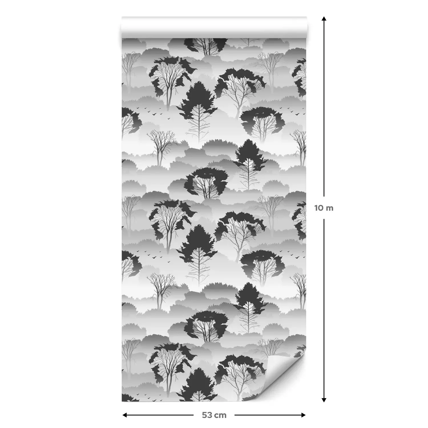 Eine Standard-Tapetenrolle hat die Maße 0,53 m x 10 m und deckt eine Wandfläche von etwa 5 m² ab.