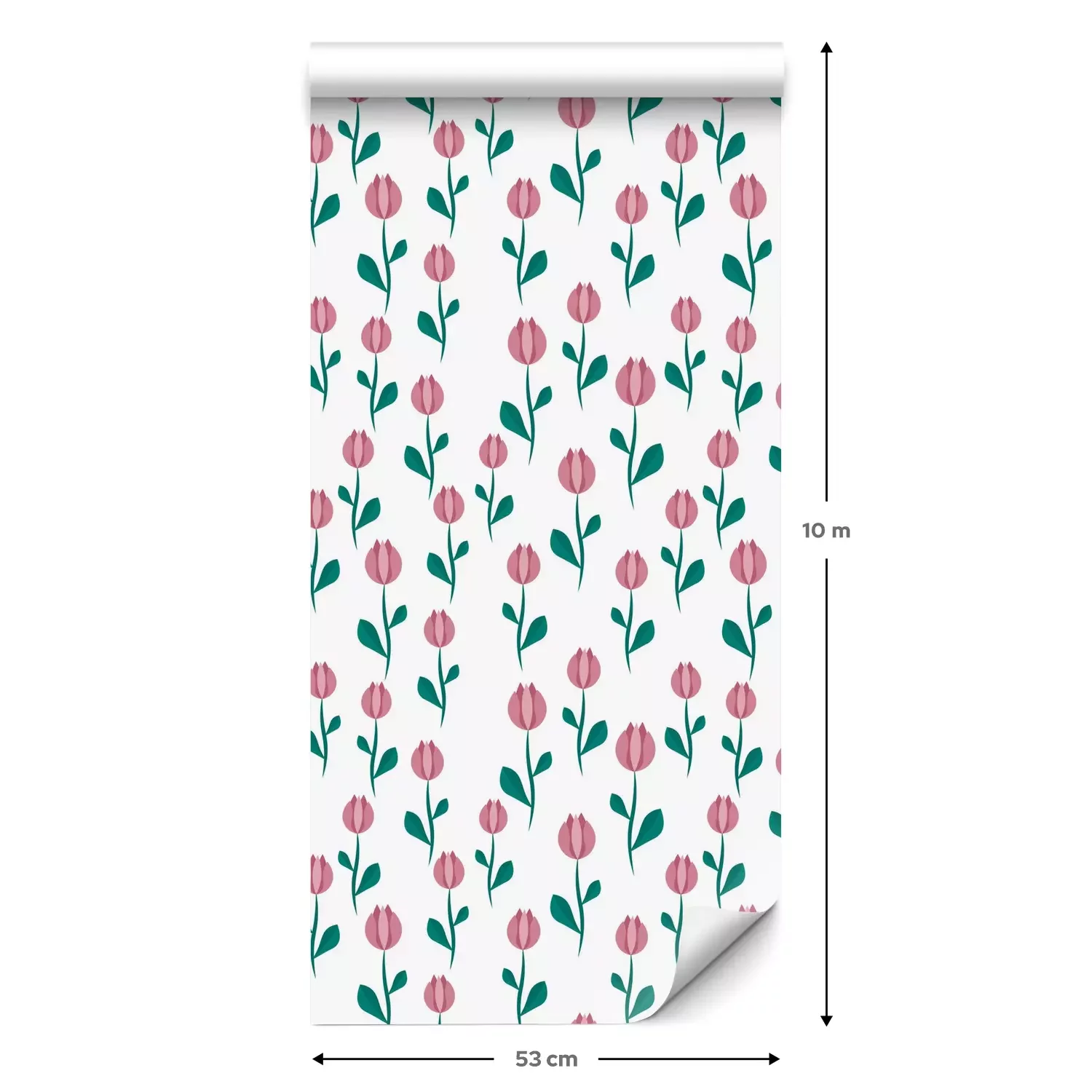 Eine Standard-Tapetenrolle hat die Maße 0,53 m x 10 m und deckt eine Wandfläche von etwa 5 m² ab.
