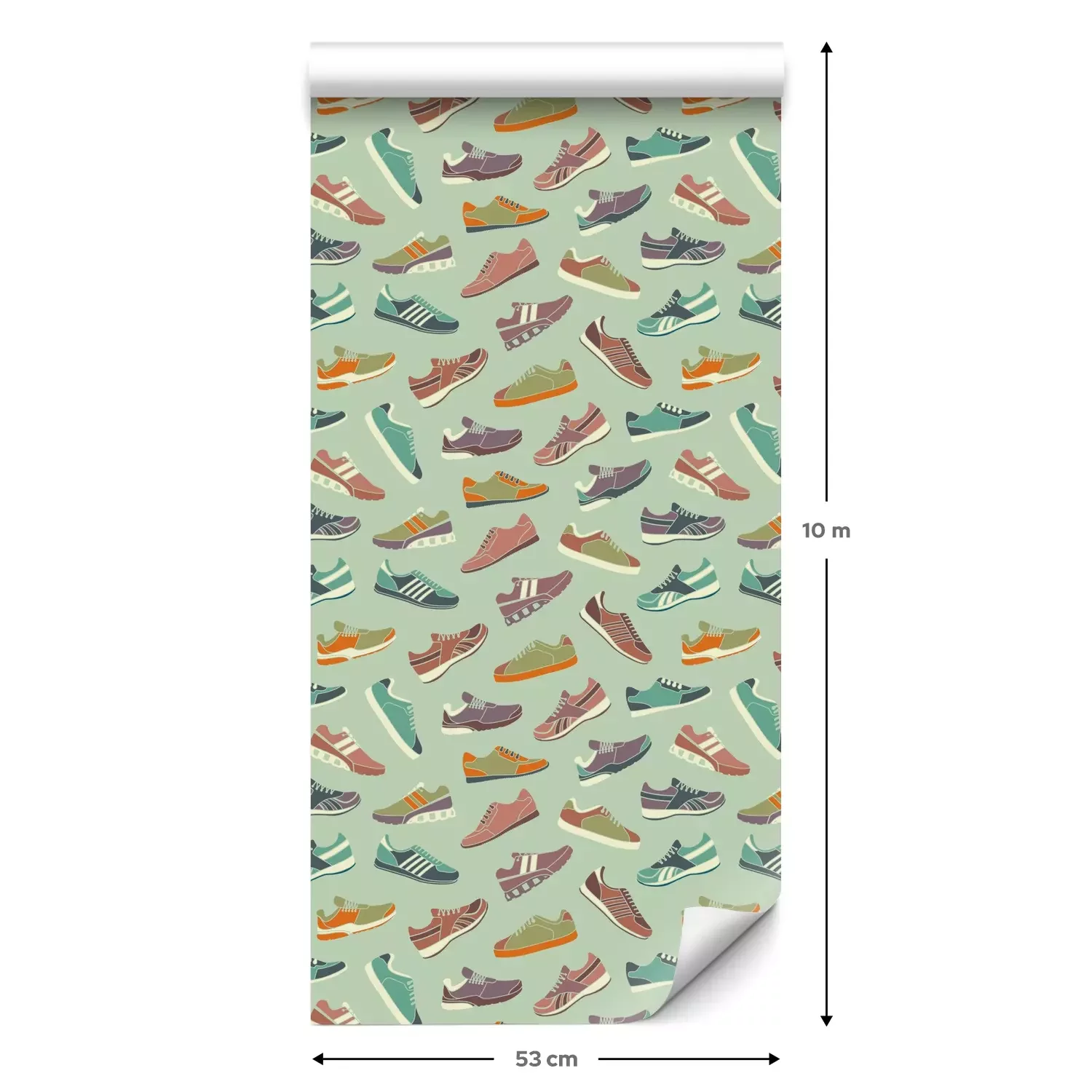 Eine Standard-Tapetenrolle hat die Maße 0,53 m x 10 m und deckt eine Wandfläche von etwa 5 m² ab.