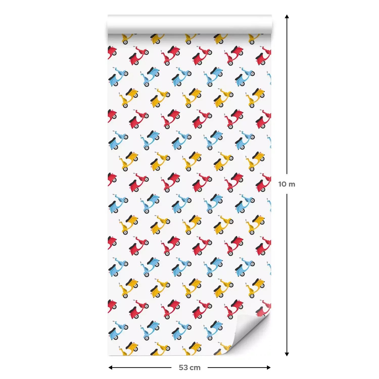 Eine Standard-Tapetenrolle hat die Maße 0,53 m x 10 m und deckt eine Wandfläche von etwa 5 m² ab.