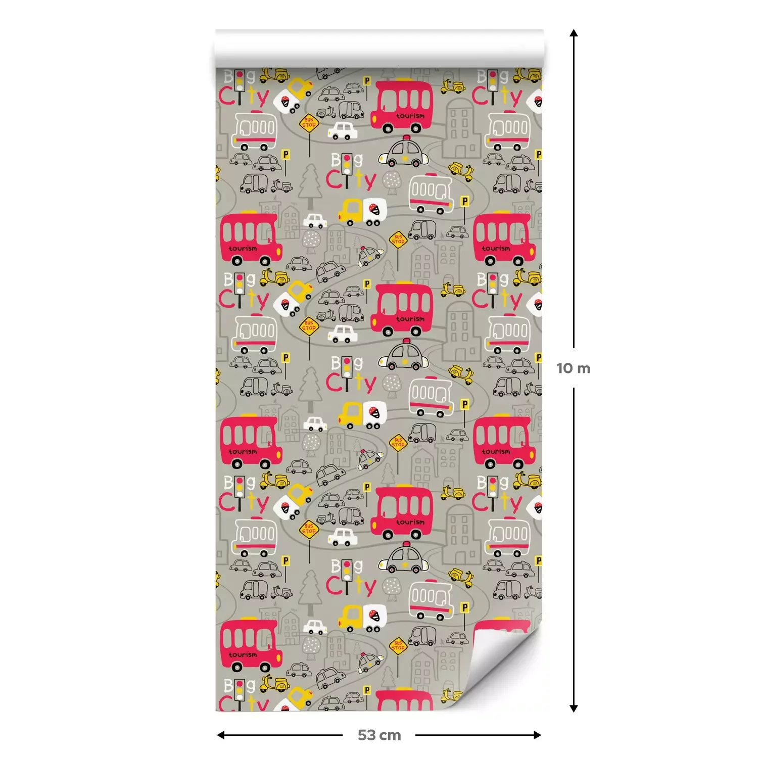 Eine Standard-Tapetenrolle hat die Maße 0,53 m x 10 m und deckt eine Wandfläche von etwa 5 m² ab.