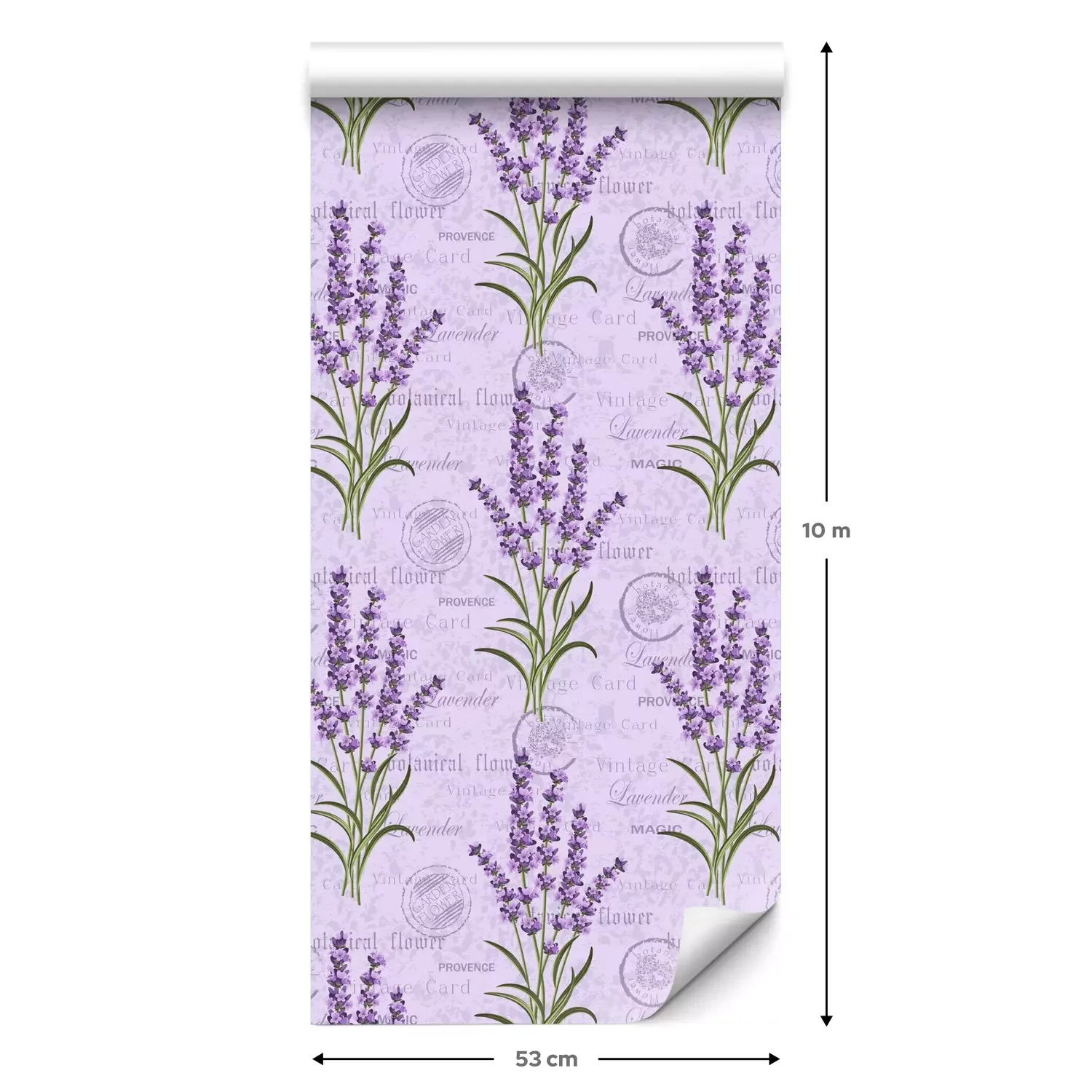 Eine Standard-Tapetenrolle hat die Maße 0,53 m x 10 m und deckt eine Wandfläche von etwa 5 m² ab.