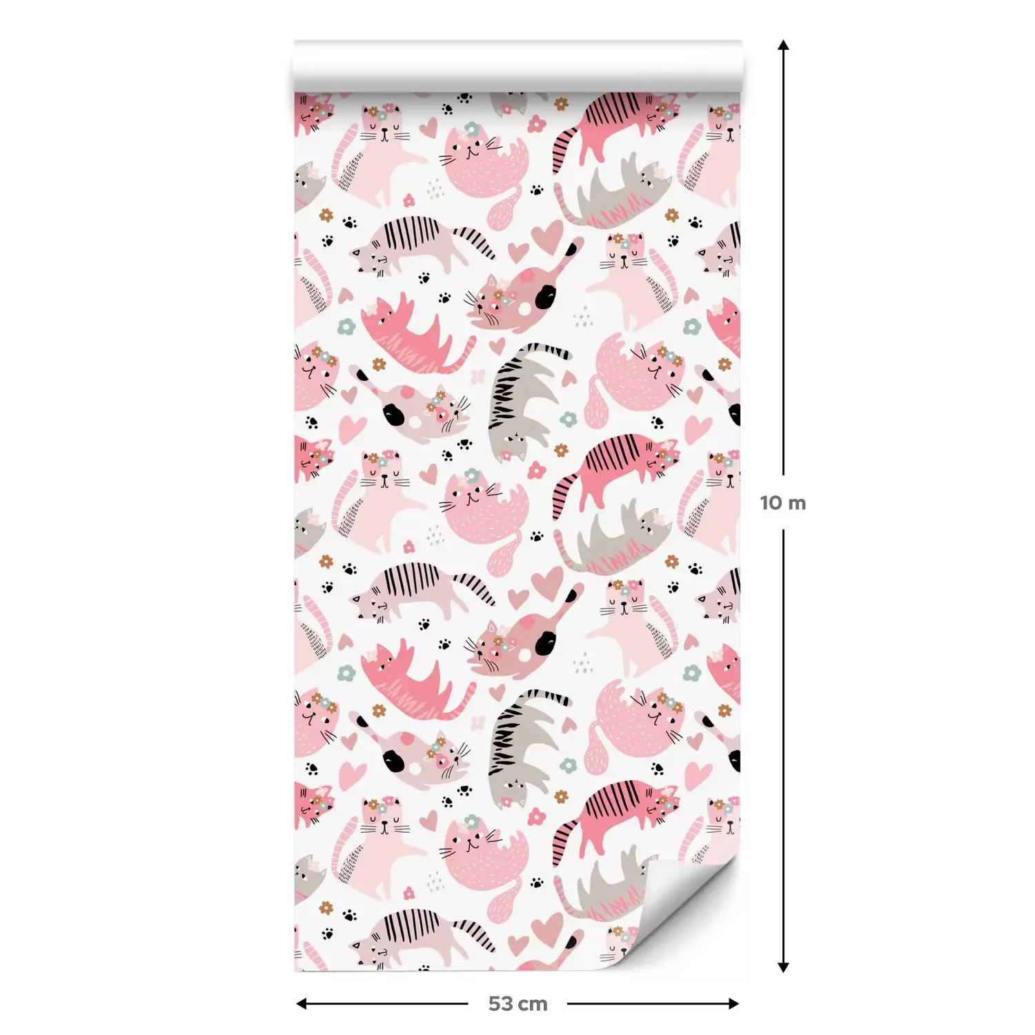 Eine Standard-Tapetenrolle hat die Maße 0,53 m x 10 m und deckt eine Wandfläche von etwa 5 m² ab.
