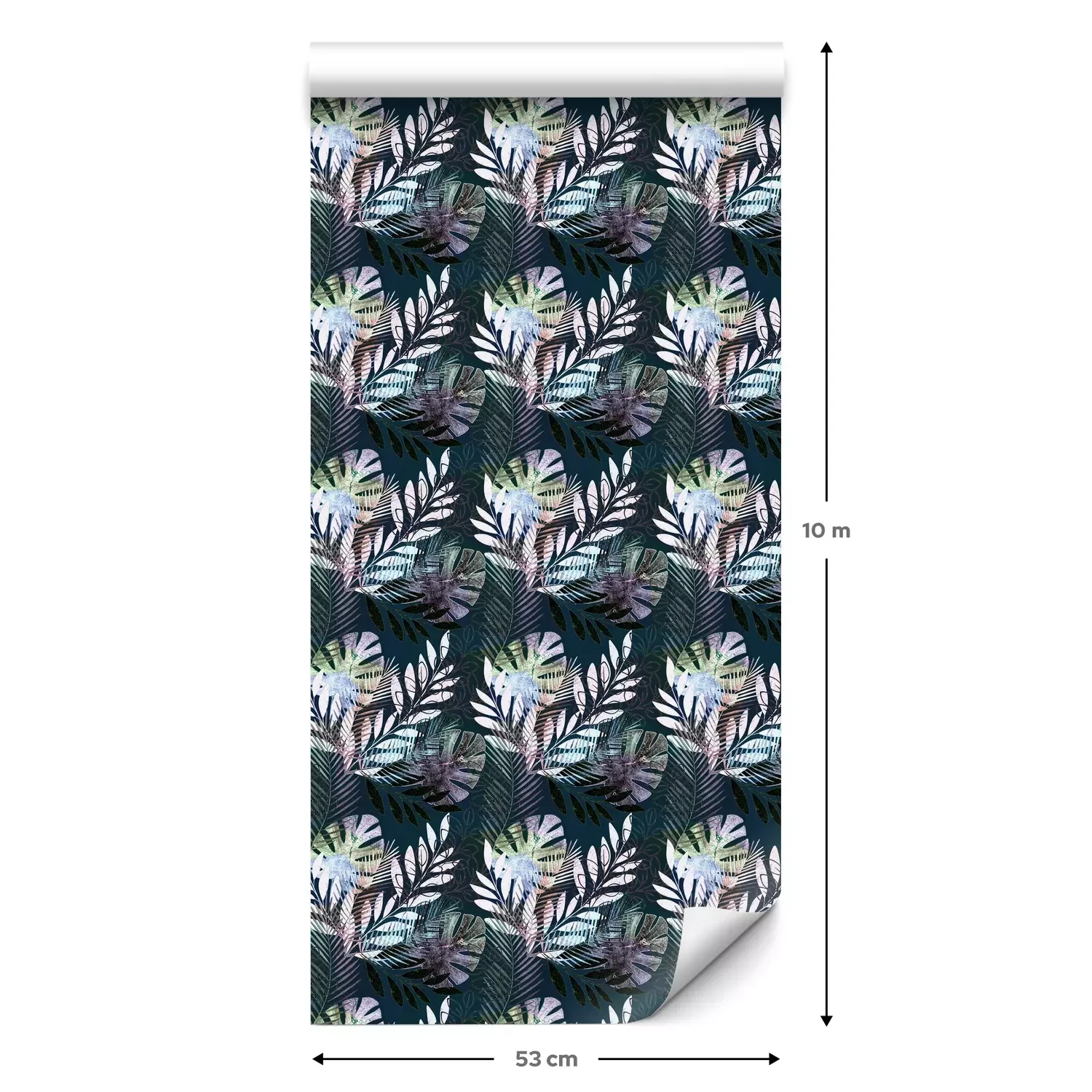 Eine Standard-Tapetenrolle hat die Maße 0,53 m x 10 m und deckt eine Wandfläche von etwa 5 m² ab.