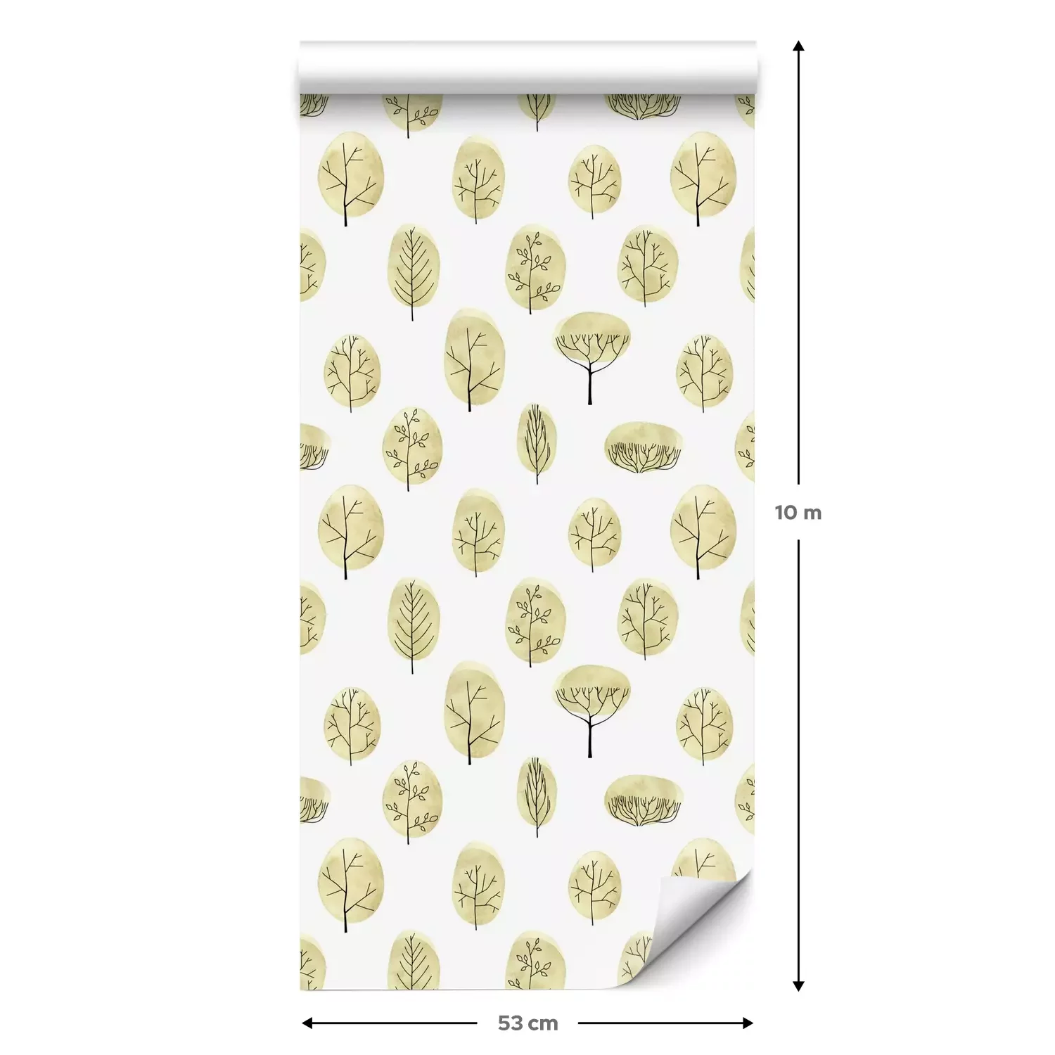 Eine Standard-Tapetenrolle hat die Maße 0,53 m x 10 m und deckt eine Wandfläche von etwa 5 m² ab.
