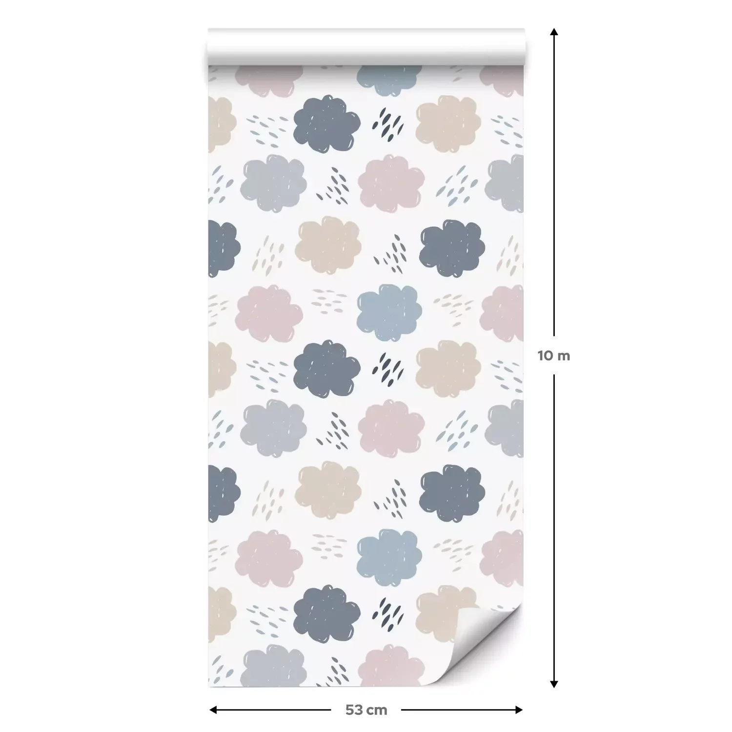 Eine Standard-Tapetenrolle hat die Maße 0,53 m x 10 m und deckt eine Wandfläche von etwa 5 m² ab.