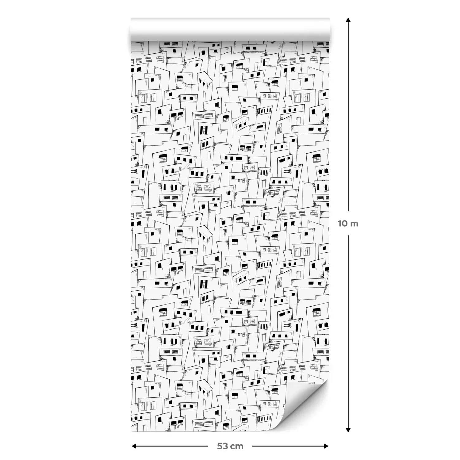 Eine Standard-Tapetenrolle hat die Maße 0,53 m x 10 m und deckt eine Wandfläche von etwa 5 m² ab.