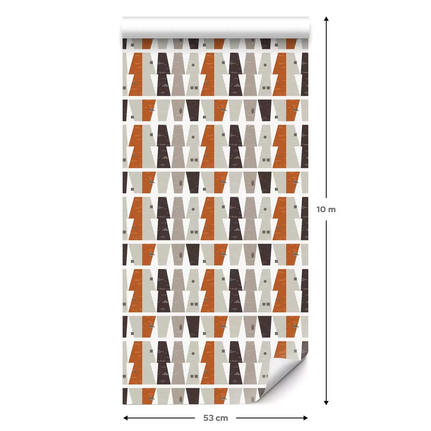 Eine Standard-Tapetenrolle hat die Maße 0,53 m x 10 m und deckt eine Wandfläche von etwa 5 m² ab.