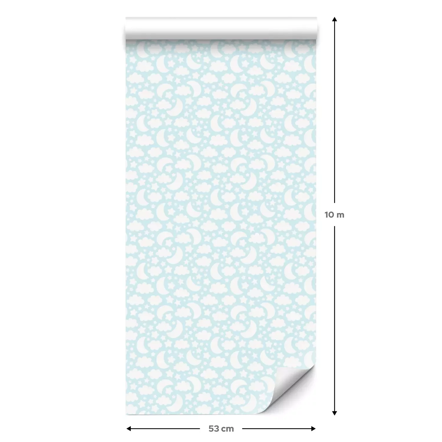 Eine Standard-Tapetenrolle hat die Maße 0,53 m x 10 m und deckt eine Wandfläche von etwa 5 m² ab.