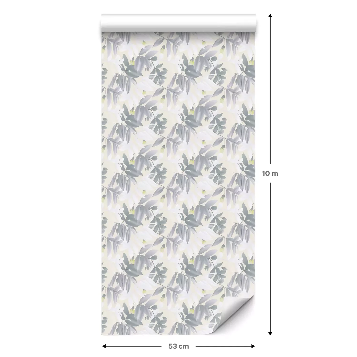 Eine Standard-Tapetenrolle hat die Maße 0,53 m x 10 m und deckt eine Wandfläche von etwa 5 m² ab.
