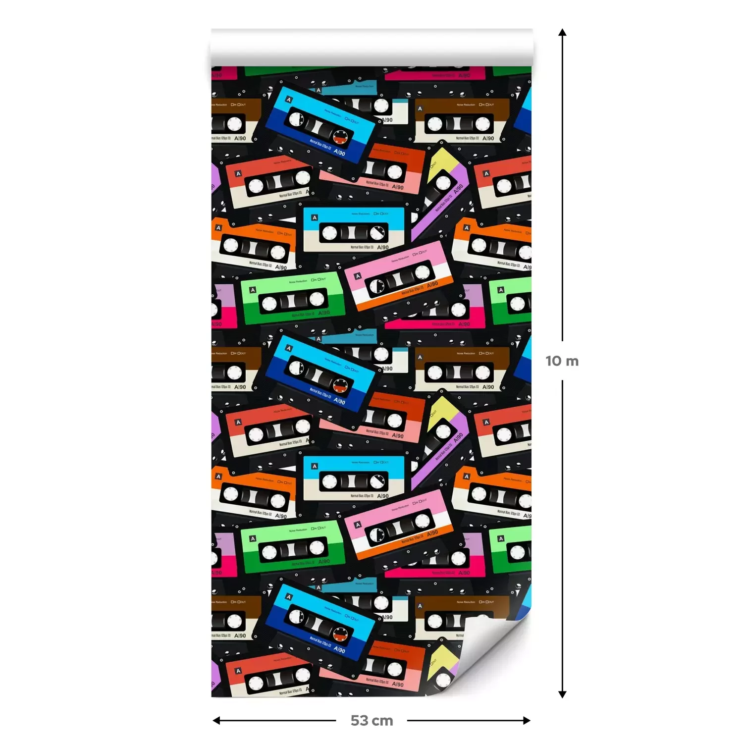 Eine Standard-Tapetenrolle hat die Maße 0,53 m x 10 m und deckt eine Wandfläche von etwa 5 m² ab.