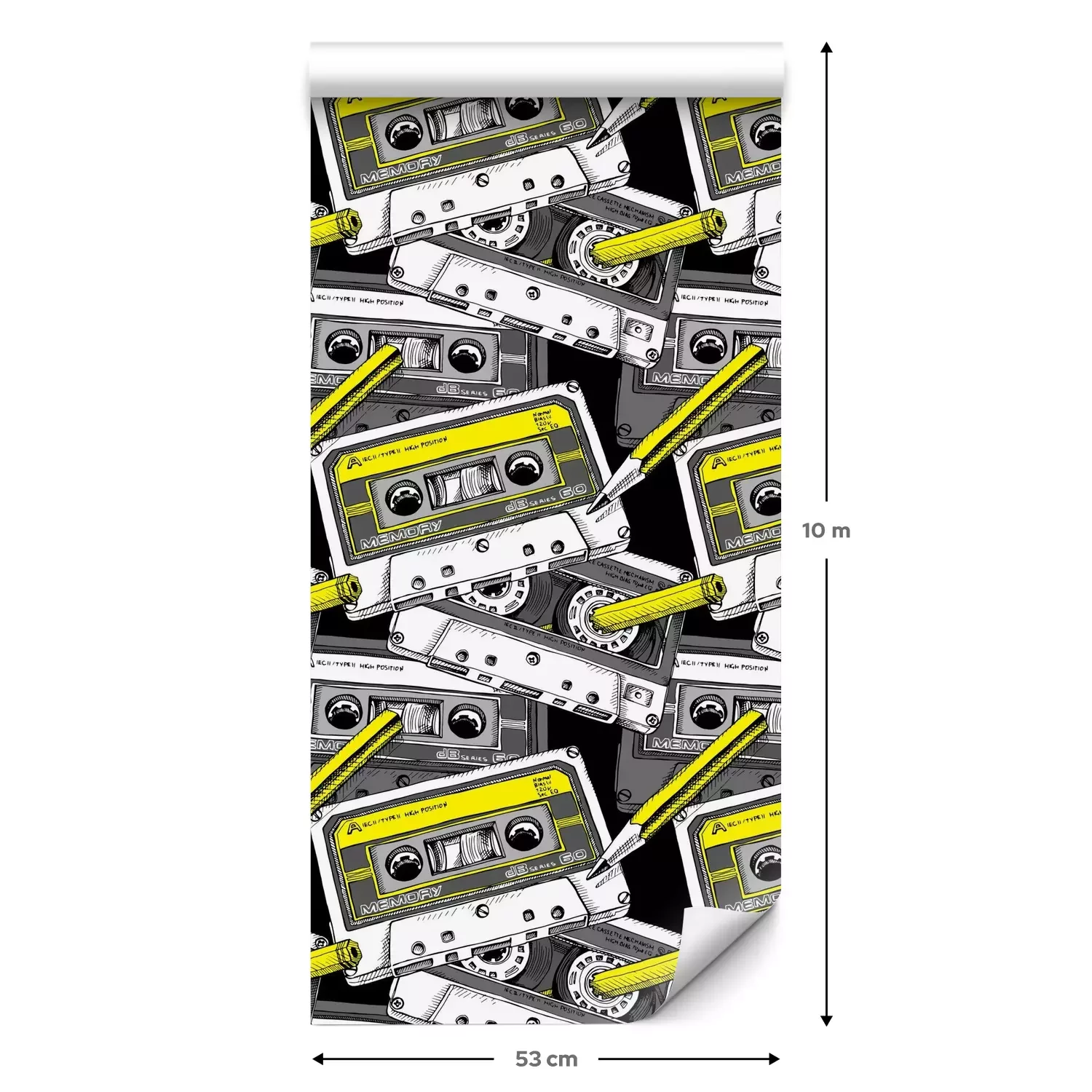 Eine Standard-Tapetenrolle hat die Maße 0,53 m x 10 m und deckt eine Wandfläche von etwa 5 m² ab.