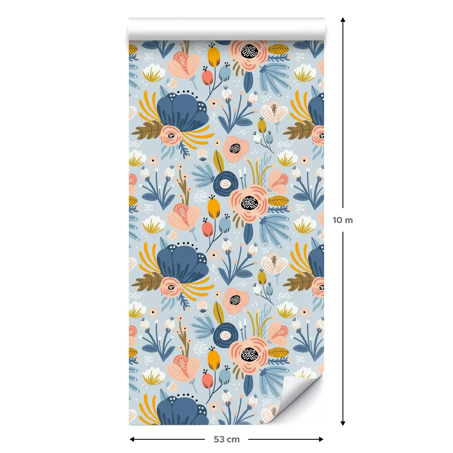 Eine Standard-Tapetenrolle hat die Maße 0,53 m x 10 m und deckt eine Wandfläche von etwa 5 m² ab.