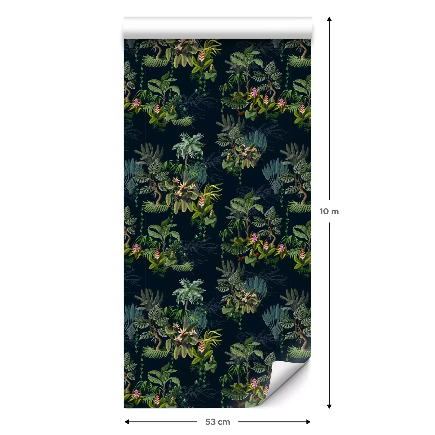 Eine Standard-Tapetenrolle hat die Maße 0,53 m x 10 m und deckt eine Wandfläche von etwa 5 m² ab.