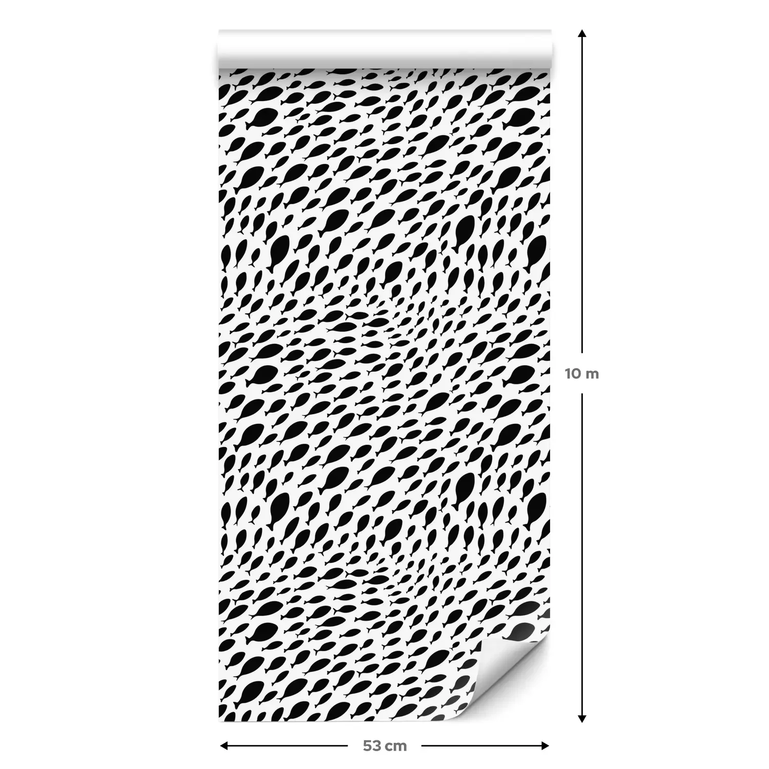 Eine Standard-Tapetenrolle hat die Maße 0,53 m x 10 m und deckt eine Wandfläche von etwa 5 m² ab.