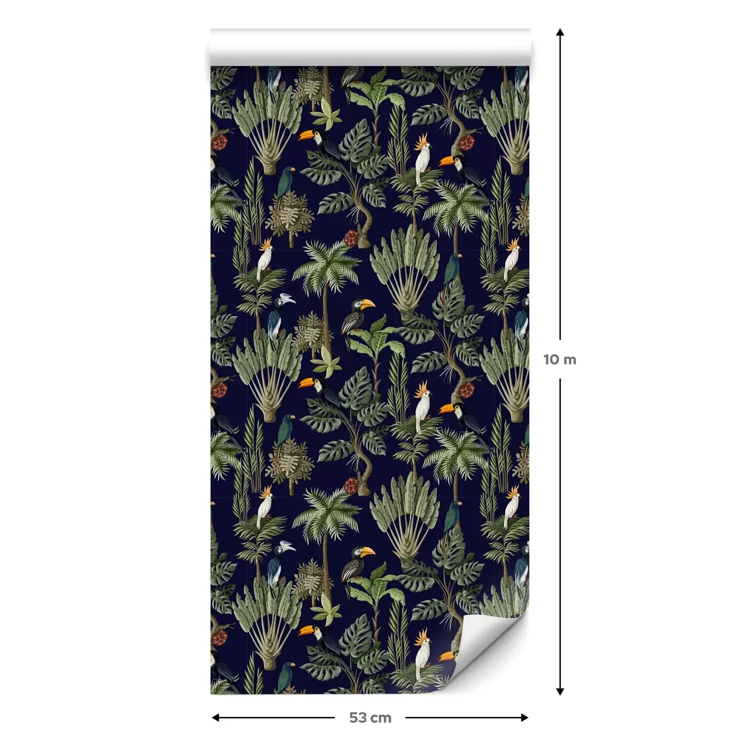 Eine Standard-Tapetenrolle hat die Maße 0,53 m x 10 m und deckt eine Wandfläche von etwa 5 m² ab.