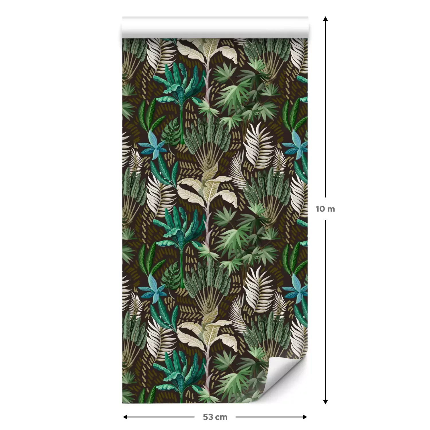 Eine Standard-Tapetenrolle hat die Maße 0,53 m x 10 m und deckt eine Wandfläche von etwa 5 m² ab.