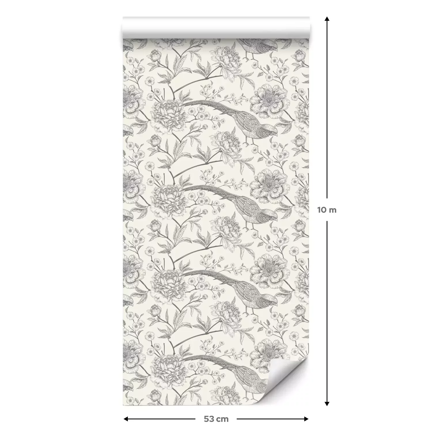 Eine Standard-Tapetenrolle hat die Maße 0,53 m x 10 m und deckt eine Wandfläche von etwa 5 m² ab.