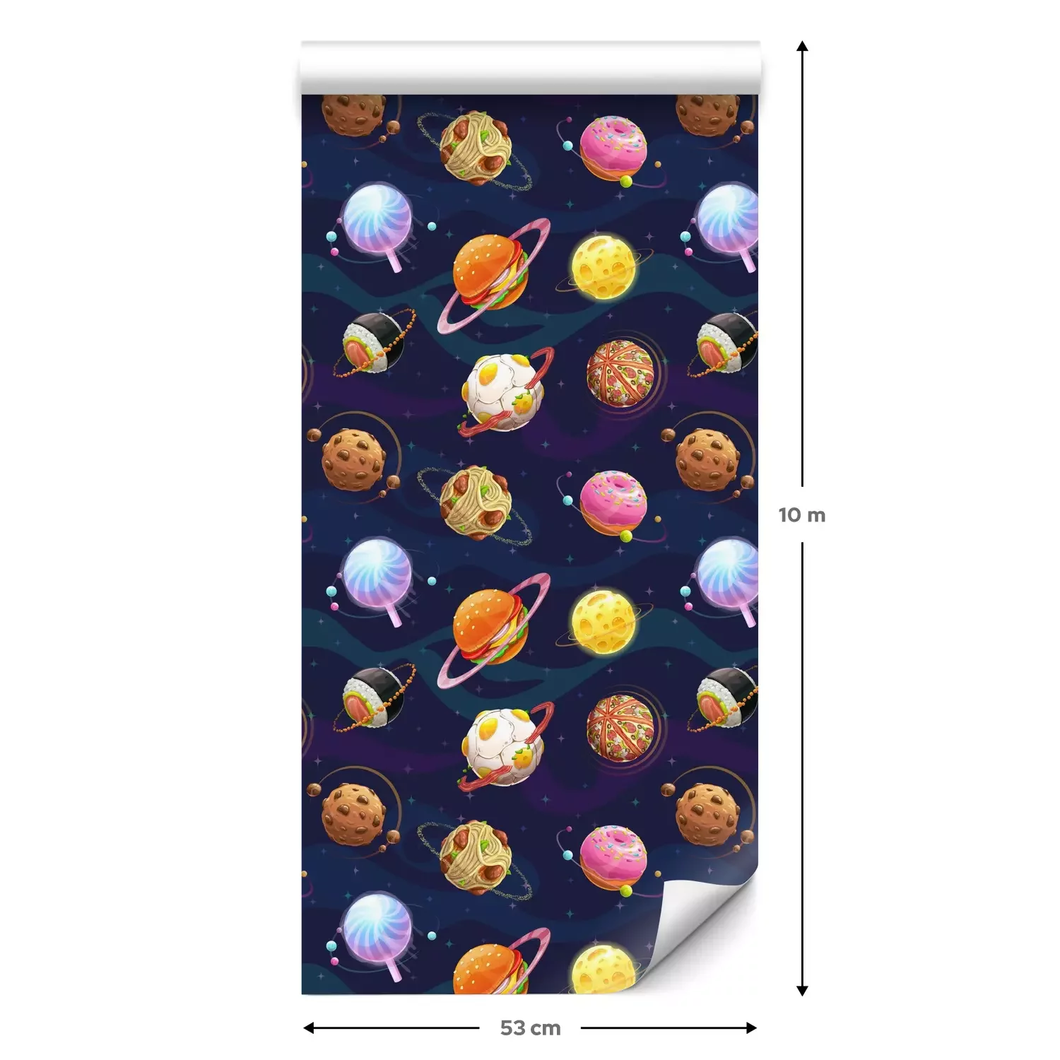 Eine Standard-Tapetenrolle hat die Maße 0,53 m x 10 m und deckt eine Wandfläche von etwa 5 m² ab.
