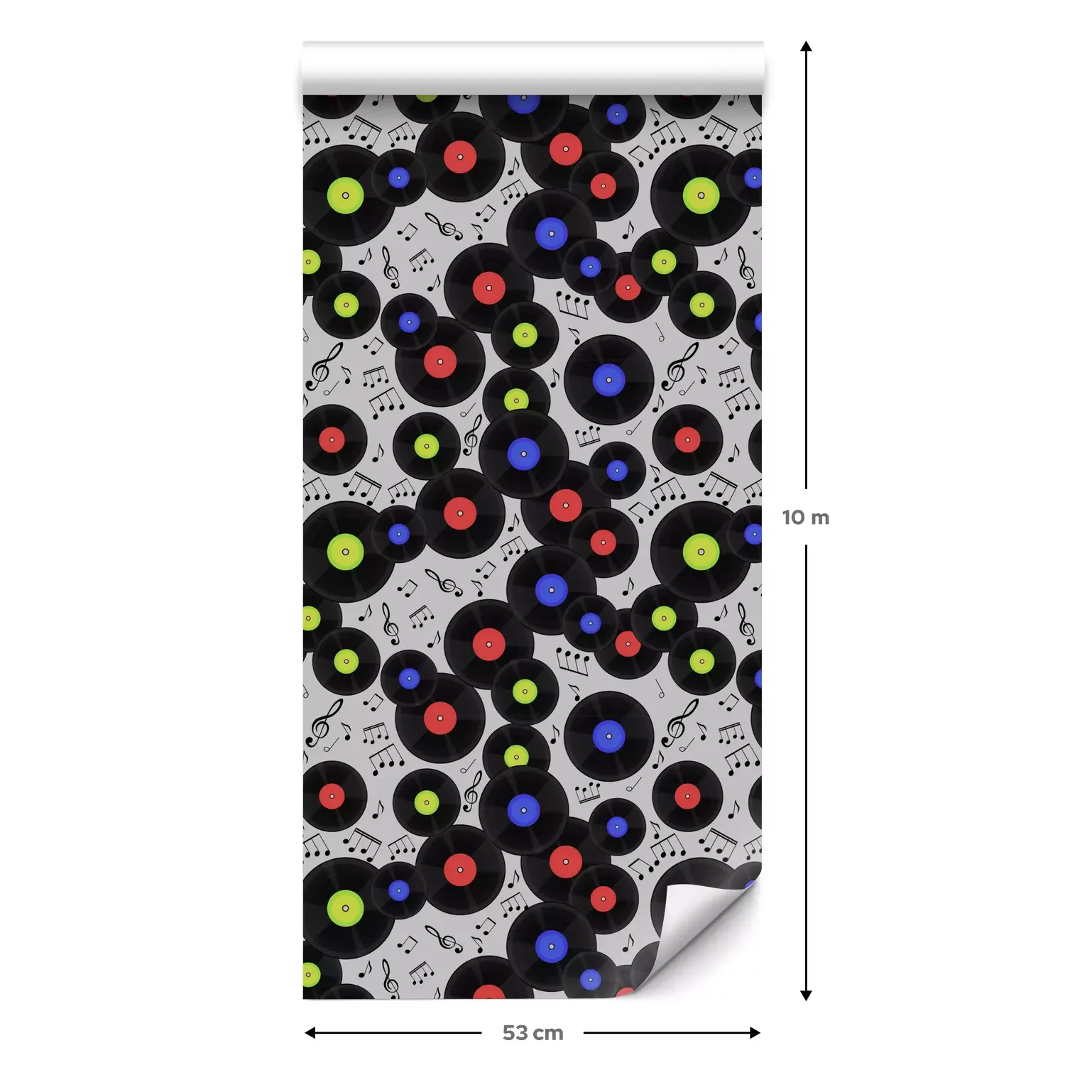 Eine Standard-Tapetenrolle hat die Maße 0,53 m x 10 m und deckt eine Wandfläche von etwa 5 m² ab.