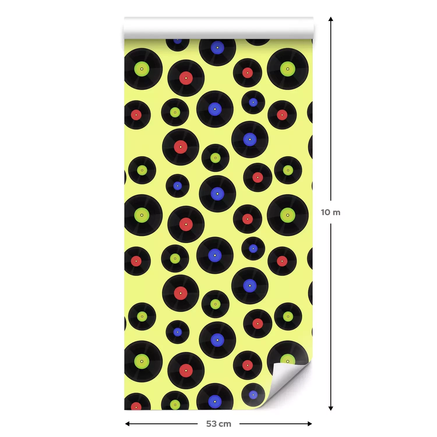 Eine Standard-Tapetenrolle hat die Maße 0,53 m x 10 m und deckt eine Wandfläche von etwa 5 m² ab.