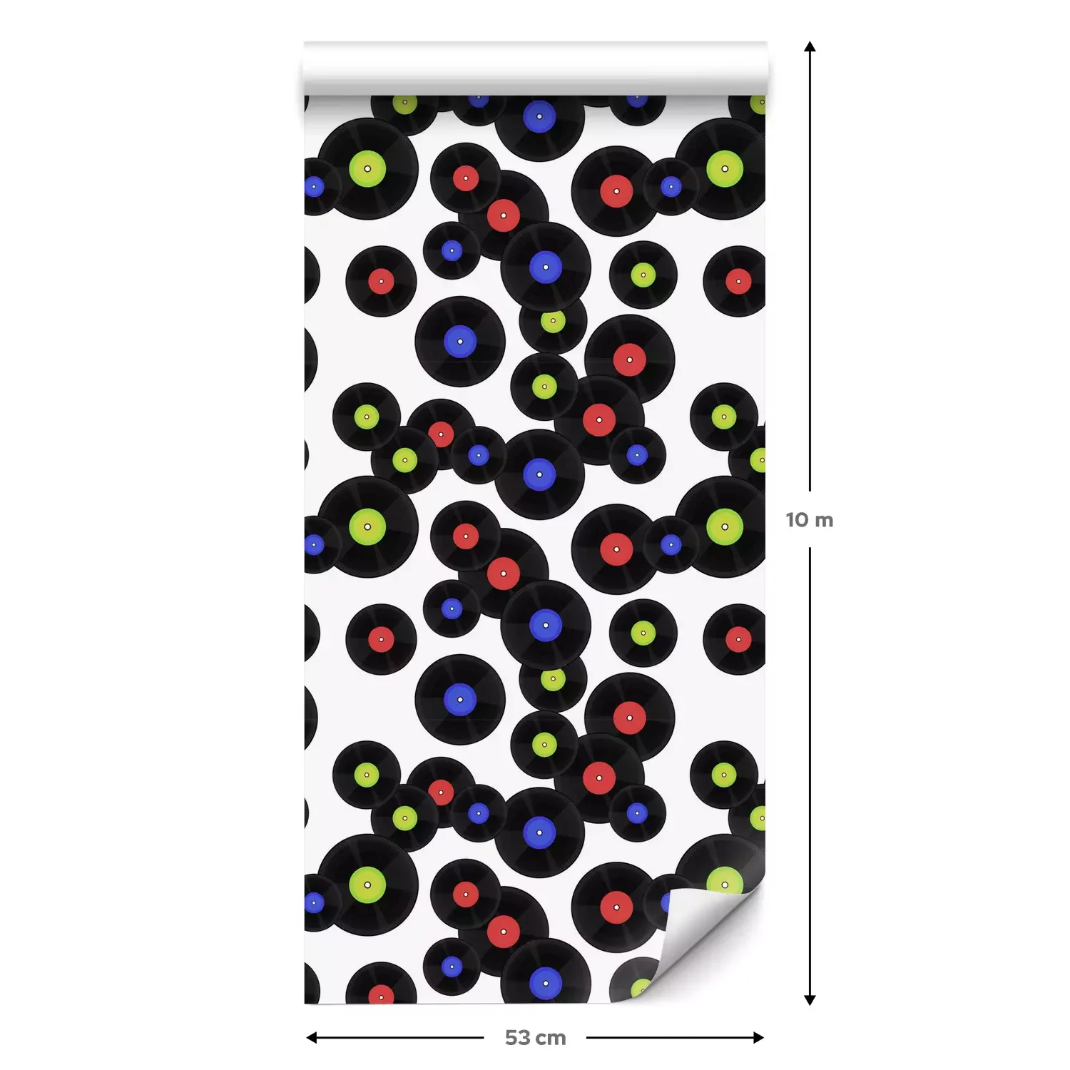 Eine Standard-Tapetenrolle hat die Maße 0,53 m x 10 m und deckt eine Wandfläche von etwa 5 m² ab.