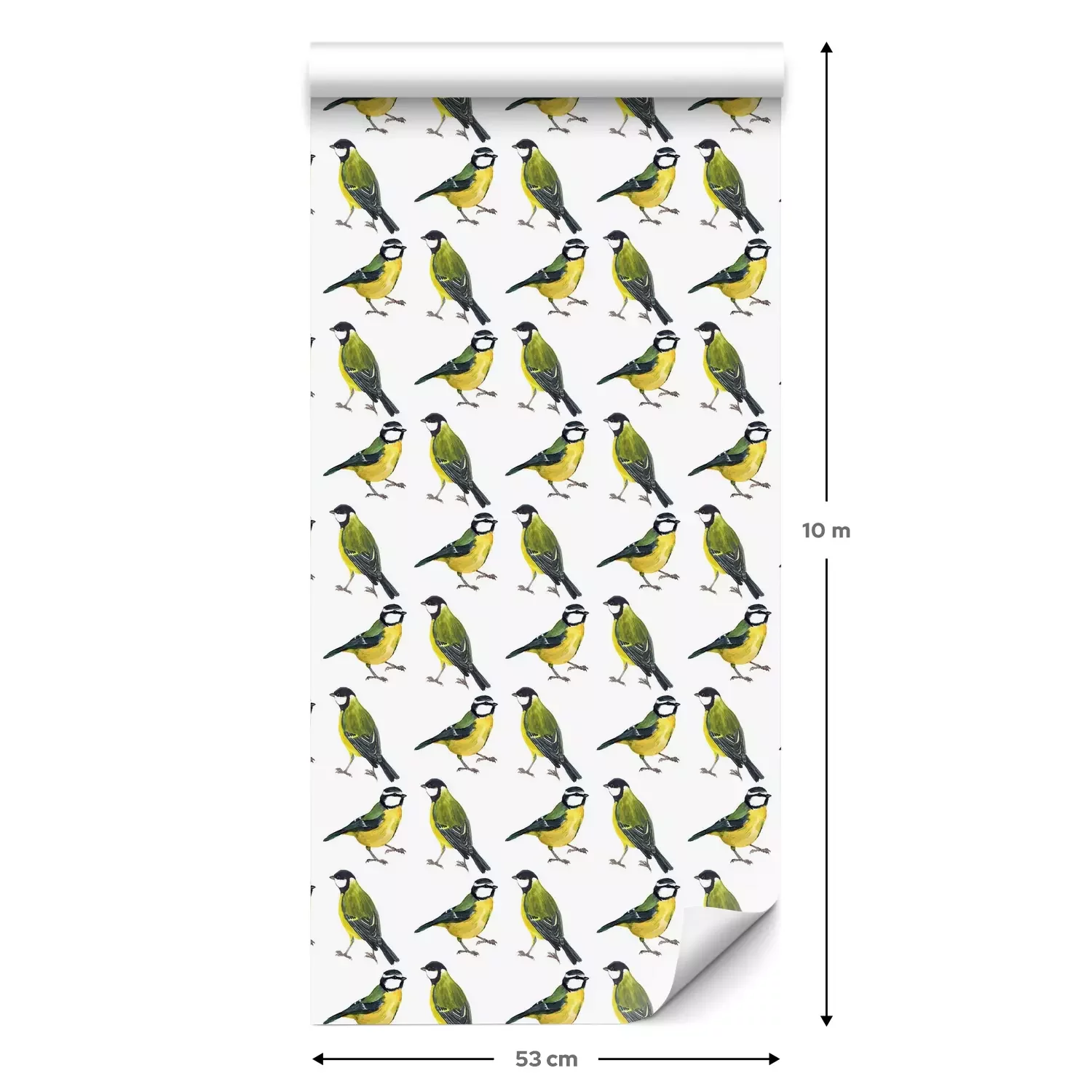 Eine Standard-Tapetenrolle hat die Maße 0,53 m x 10 m und deckt eine Wandfläche von etwa 5 m² ab.