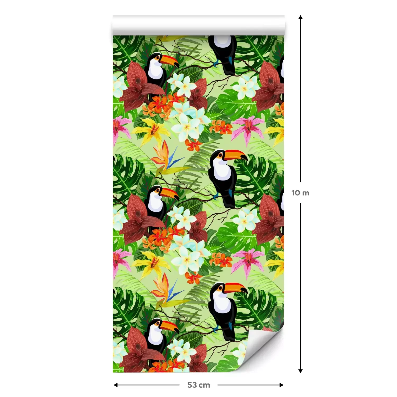 Eine Standard-Tapetenrolle hat die Maße 0,53 m x 10 m und deckt eine Wandfläche von etwa 5 m² ab.