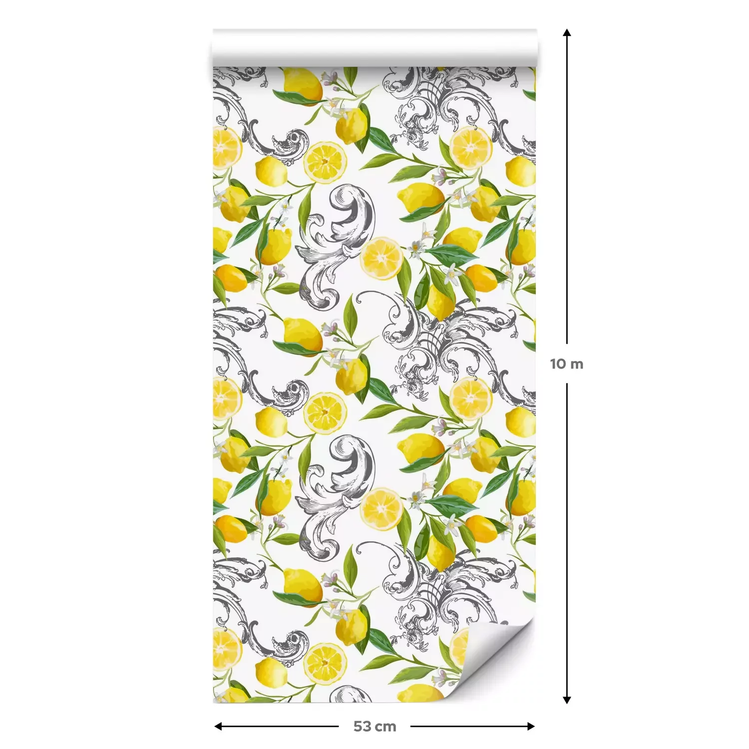 Eine Standard-Tapetenrolle hat die Maße 0,53 m x 10 m und deckt eine Wandfläche von etwa 5 m² ab.