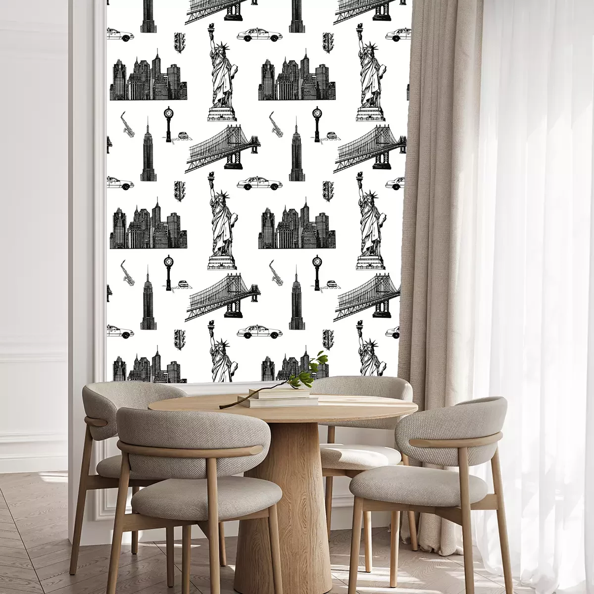 Die Tapete zeichnet sich durch ein sich wiederholendes Muster aus, das ein rhythmisches Design erzeugt. Als Trägermaterial wird hier Vlies verwendet. Sie wird in Rollen mit den standardisierten Maßen 10 m x 53 cm verkauft. Eine Fototapete ist eine spezielle Art von Tapete, auf der ein Foto oder ein realistisches Bild (z.B. eine Landschaft oder eine Stadtansicht) großflächig aufgedruckt ist. Sie wird nicht in Standardrollen verkauft, sondern in Bahnen, die auf die Abmessungen einer bestimmten Wand zugeschnitten sind. So passt das gesamte Motiv perfekt darauf. Zudem können Sie das Material wählen, aus dem die Tapete hergestellt werden soll.
