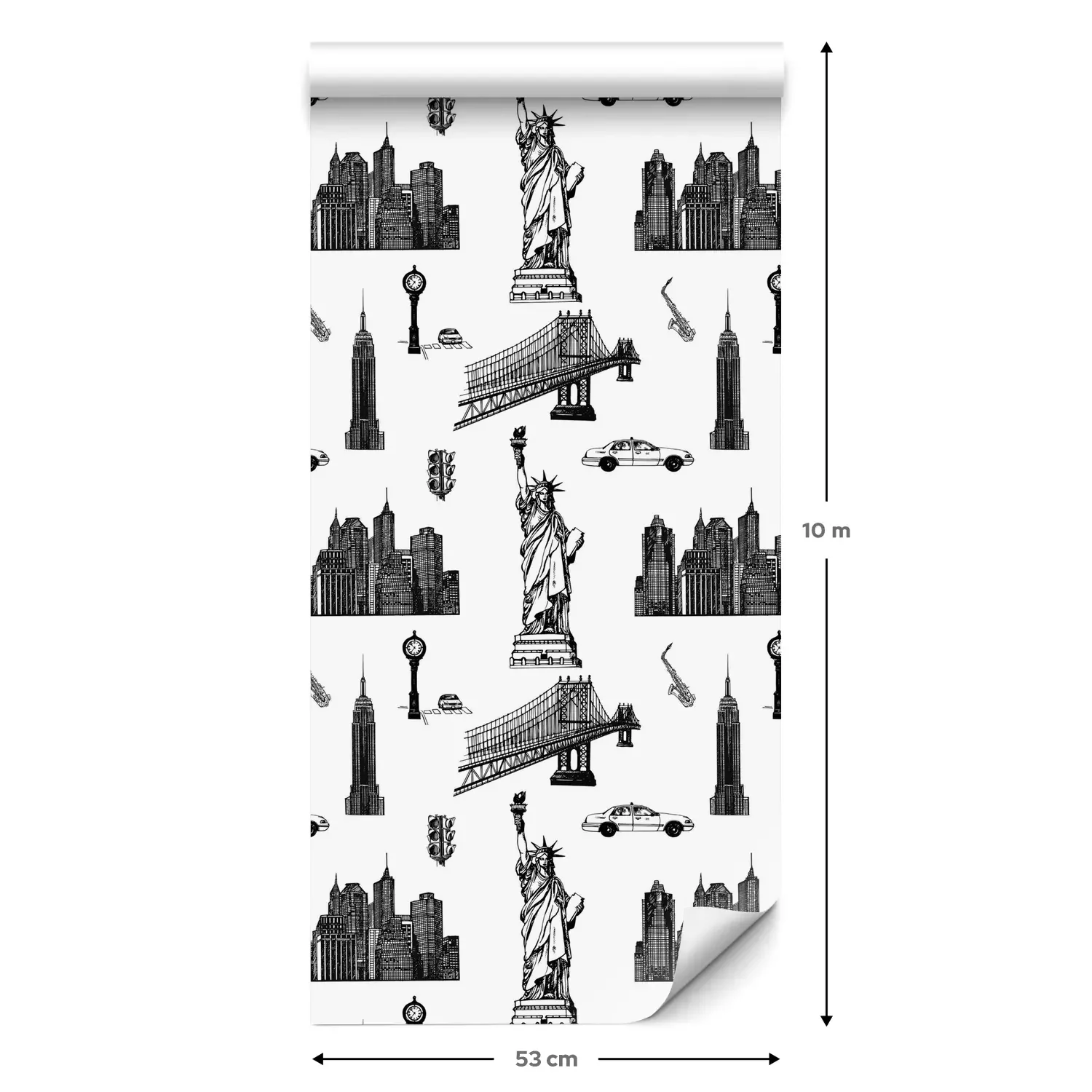 Eine Standard-Tapetenrolle hat die Maße 0,53 m x 10 m und deckt eine Wandfläche von etwa 5 m² ab.