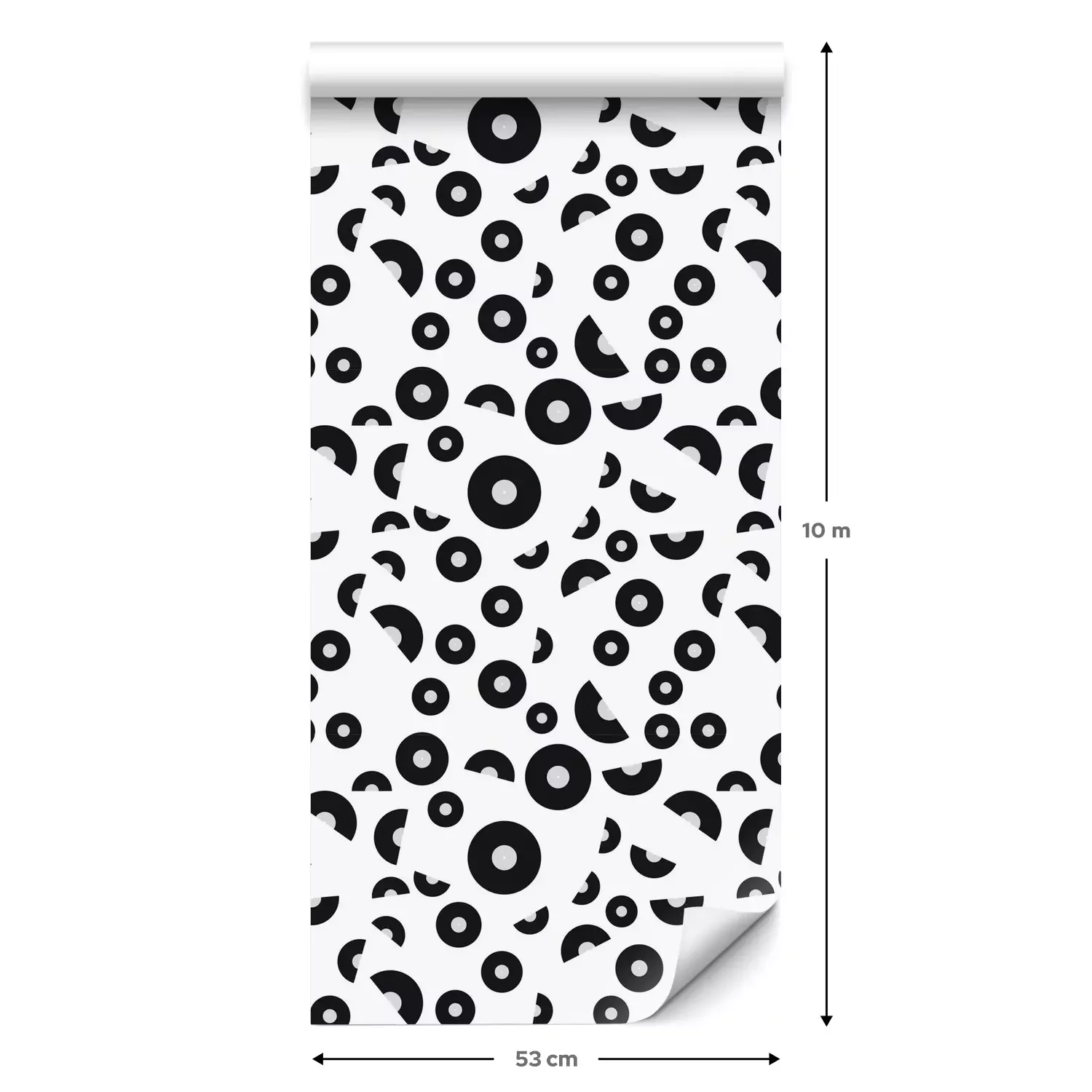 Eine Standard-Tapetenrolle hat die Maße 0,53 m x 10 m und deckt eine Wandfläche von etwa 5 m² ab.
