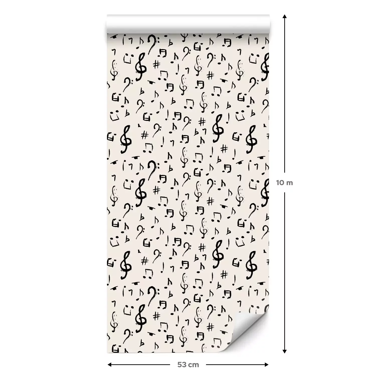 Eine Standard-Tapetenrolle hat die Maße 0,53 m x 10 m und deckt eine Wandfläche von etwa 5 m² ab.