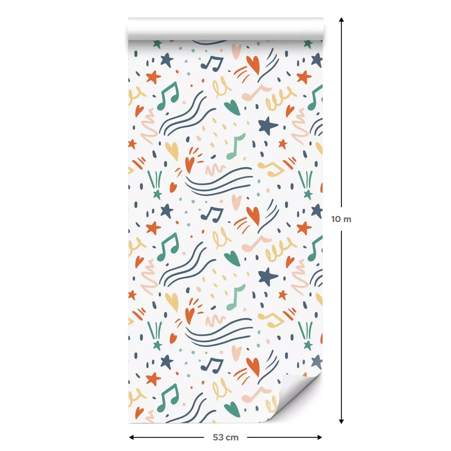 Eine Standard-Tapetenrolle hat die Maße 0,53 m x 10 m und deckt eine Wandfläche von etwa 5 m² ab.