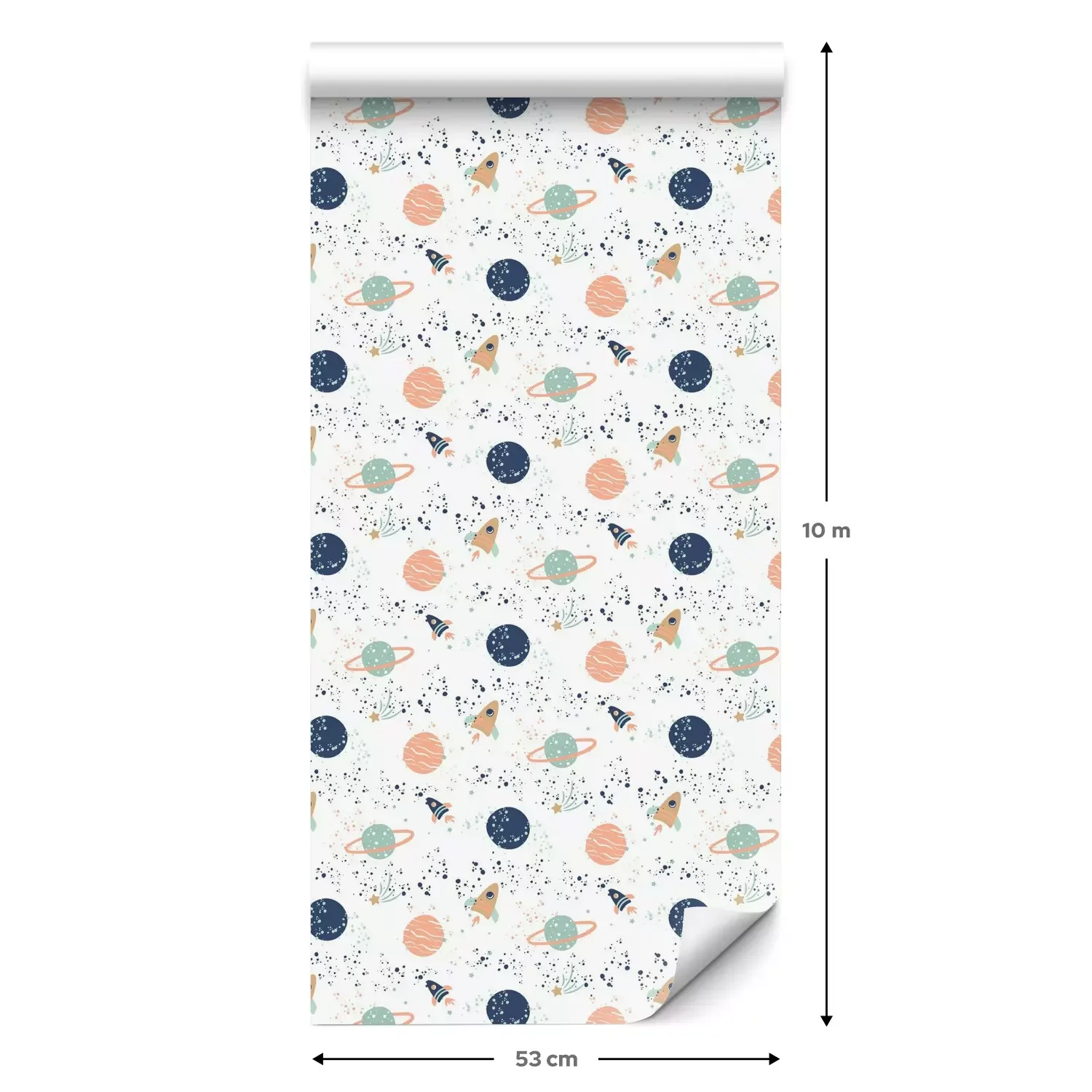 Eine Standard-Tapetenrolle hat die Maße 0,53 m x 10 m und deckt eine Wandfläche von etwa 5 m² ab.