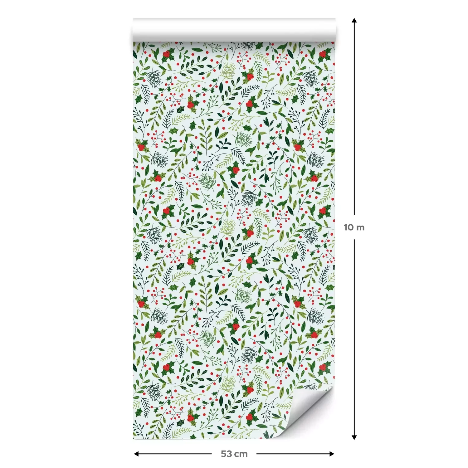 Eine Standard-Tapetenrolle hat die Maße 0,53 m x 10 m und deckt eine Wandfläche von etwa 5 m² ab.