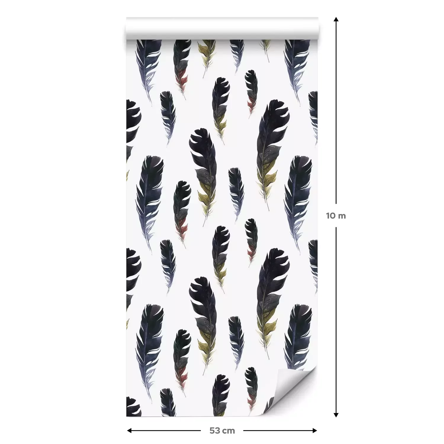 Eine Standard-Tapetenrolle hat die Maße 0,53 m x 10 m und deckt eine Wandfläche von etwa 5 m² ab.
