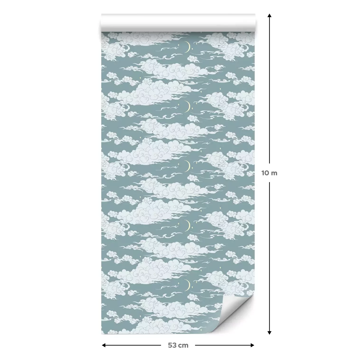 Eine Standard-Tapetenrolle hat die Maße 0,53 m x 10 m und deckt eine Wandfläche von etwa 5 m² ab.