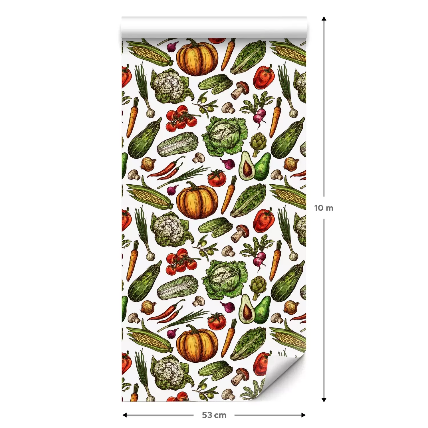 Eine Standard-Tapetenrolle hat die Maße 0,53 m x 10 m und deckt eine Wandfläche von etwa 5 m² ab.
