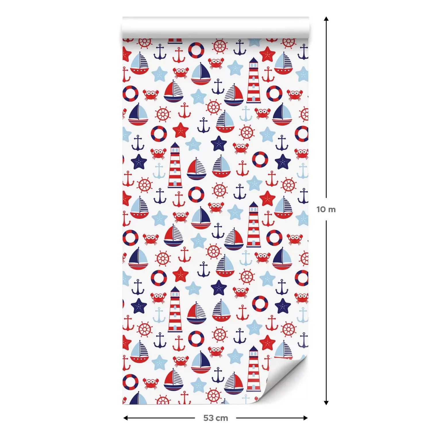 Eine Standard-Tapetenrolle hat die Maße 0,53 m x 10 m und deckt eine Wandfläche von etwa 5 m² ab.