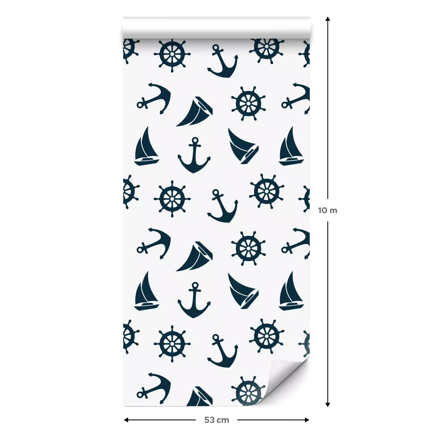 Eine Standard-Tapetenrolle hat die Maße 0,53 m x 10 m und deckt eine Wandfläche von etwa 5 m² ab.