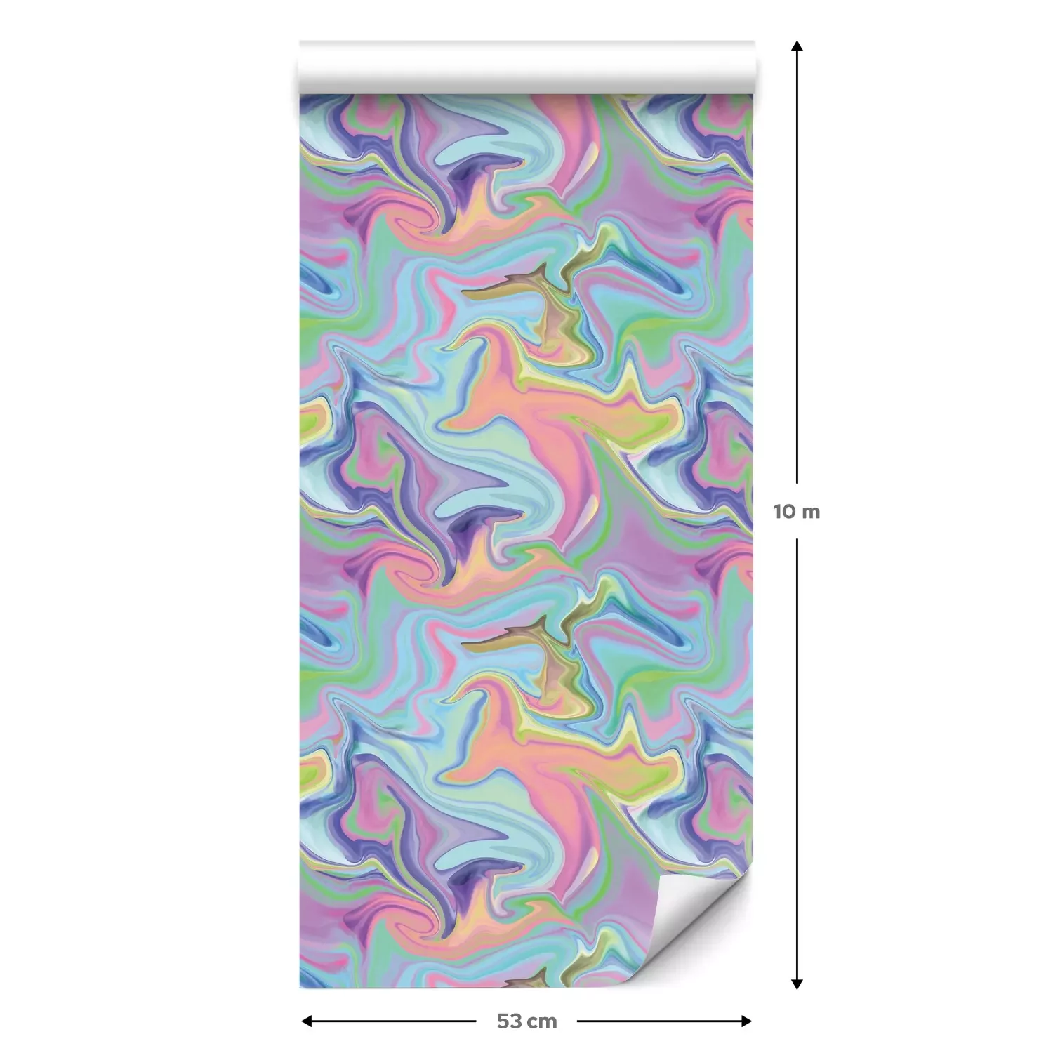 Eine Standard-Tapetenrolle hat die Maße 0,53 m x 10 m und deckt eine Wandfläche von etwa 5 m² ab.
