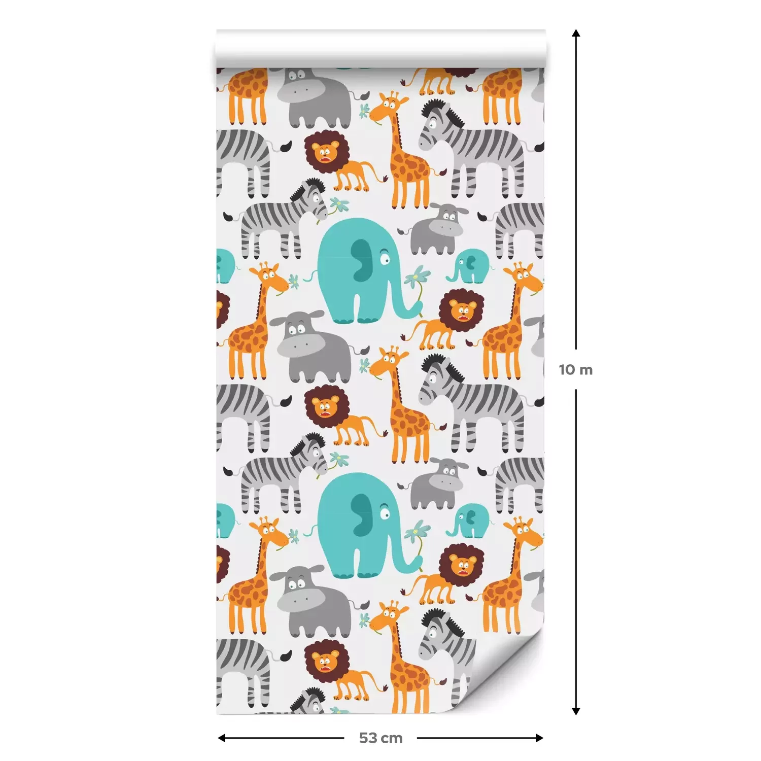 Eine Standard-Tapetenrolle hat die Maße 0,53 m x 10 m und deckt eine Wandfläche von etwa 5 m² ab.